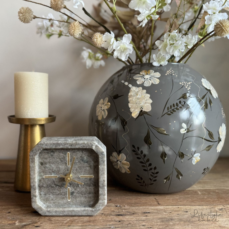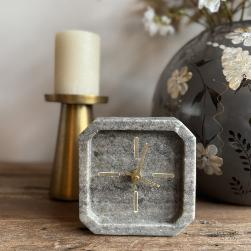 Een super leuk tafelklokje uit de collectie van Light&Living. De klok is gemaakt van Marmer in de kleur grijs.