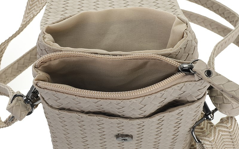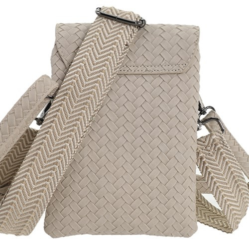 Het Brisbane telefoontasje combineert een stijlvol gevlochten design met praktische functionaliteit. Dit compacte model is perfect voor dagelijks gebruik en sluit naadloos aan bij de trend van handige crossbody tasjes voor smartphones en essentials.