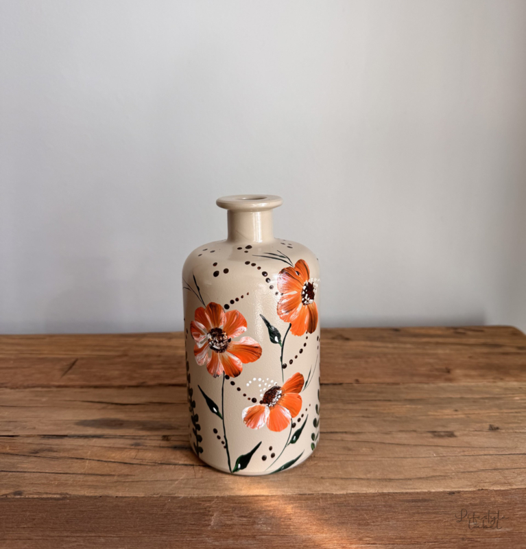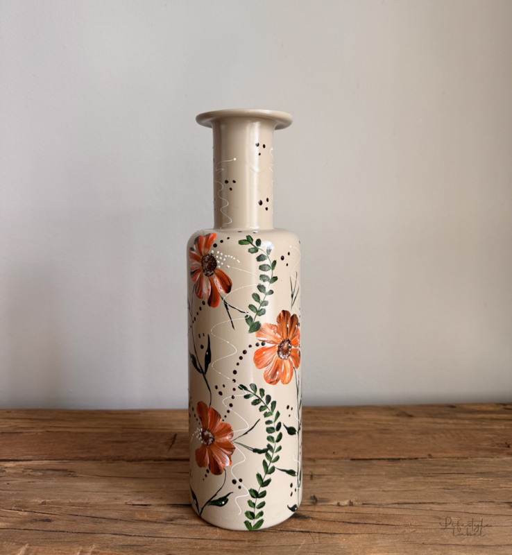 Handbeschilderde vaas beige flowerOntdek onze prachtige collectie handbeschilderde vazen. Iedere vaas is uniek door dat deze met de handbeschilderd zijn. Met veel liefde en zorg gemaakt. Geen een is exact het zelfde. Geef jouw interieur een echte eyecatcher. Met…